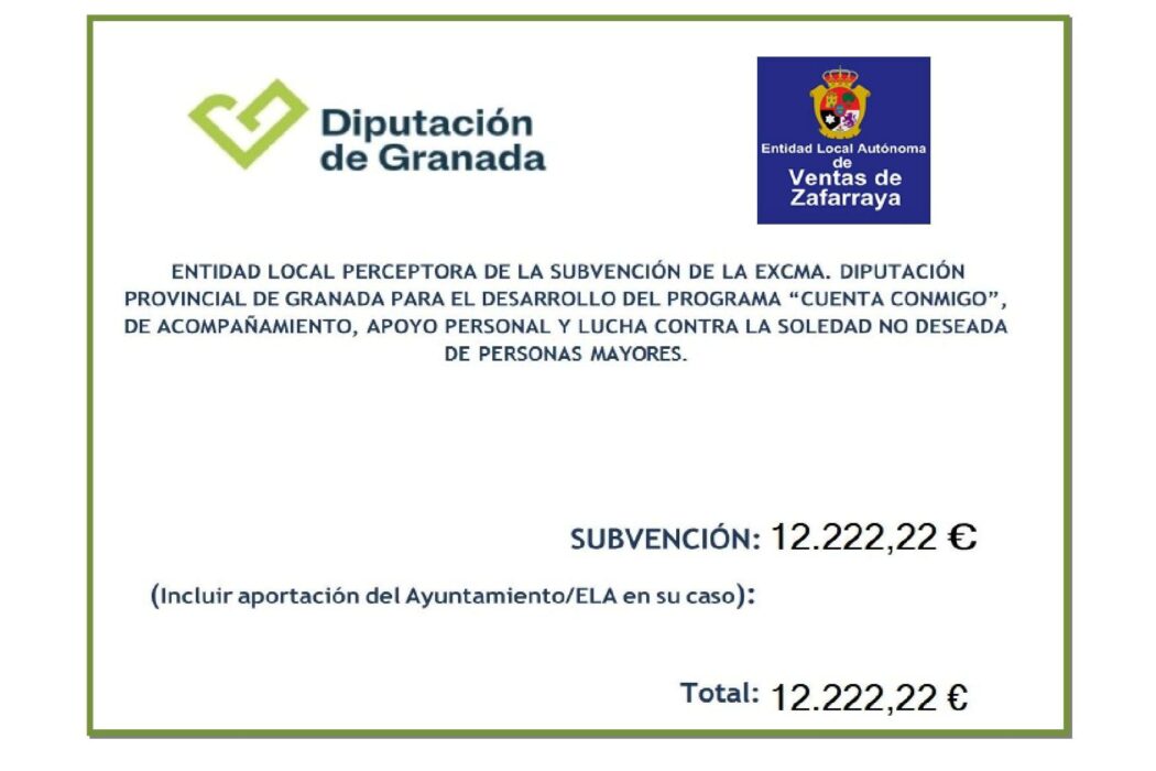 La Entidad Local Autónoma de Ventas de Zafarraya, ha sido beneficiaria del programa«Cuenta Conmigo», dirigido a municipios de la provincia de Granada menores de 20.000habitantes, programa subvencionado por parte de…