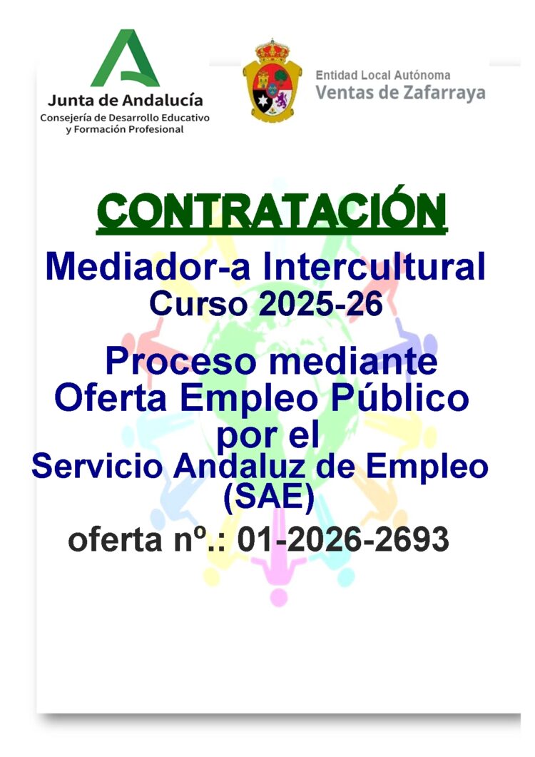 – Contratación. Oferta de empleo público. Convocatoria Mediador Intercultural, Curso: 2025-26.